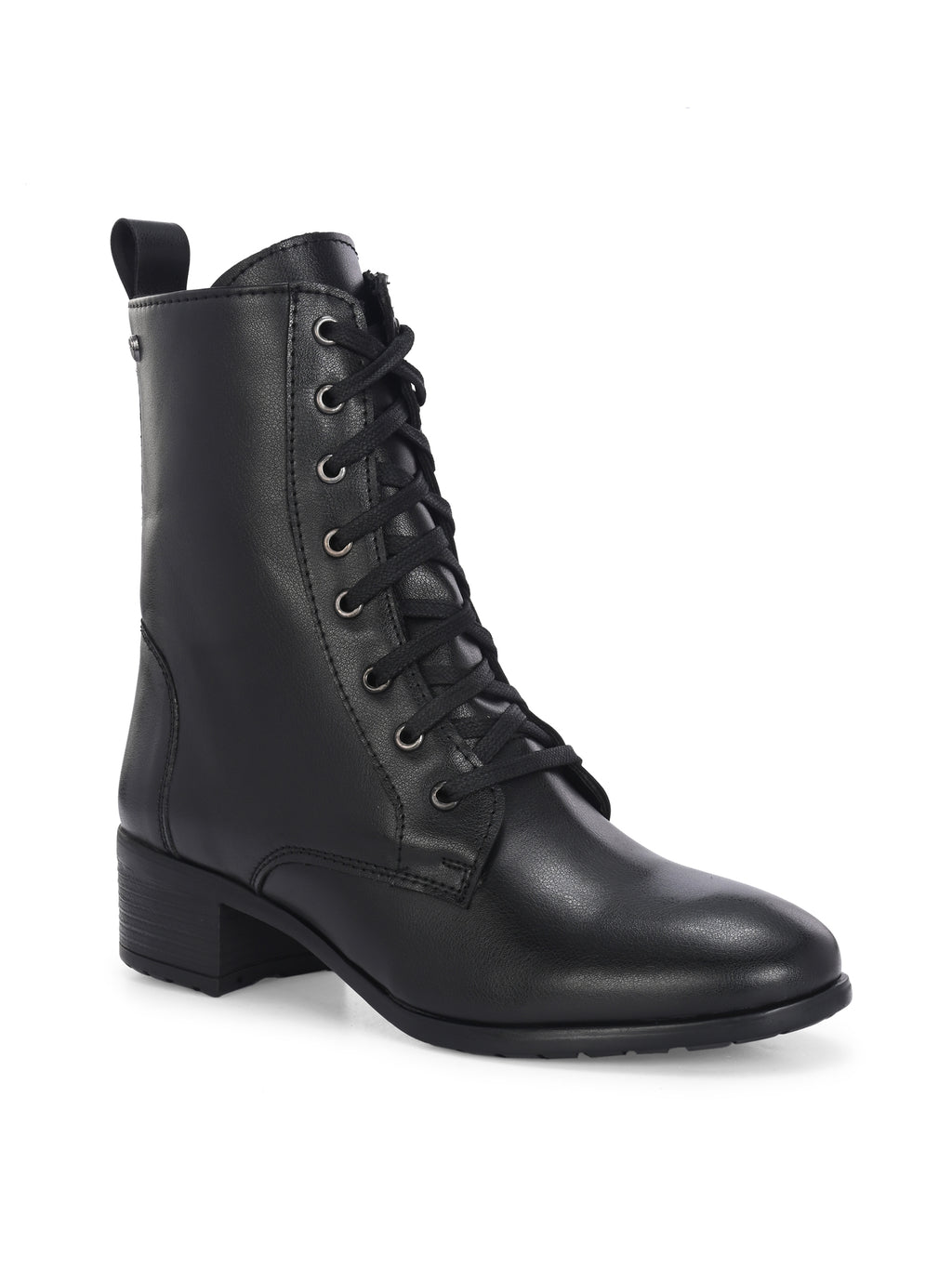Black women vegan leather boots with top stitching detail. Inside zip to wear easily. Fabric lining and memory foam insock for ultimate comfort.Heel height- 2.5 inches