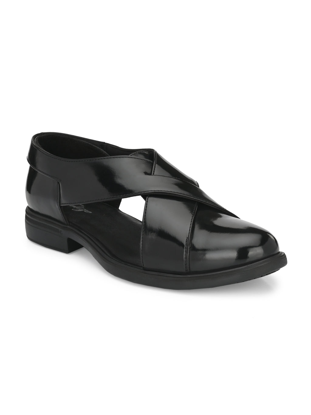 Delize Light - Black men's synthetic leather roman sandals for all occasions with back strap and buckle detail. Fabric lining and memory foam insock for ultimate comfort.