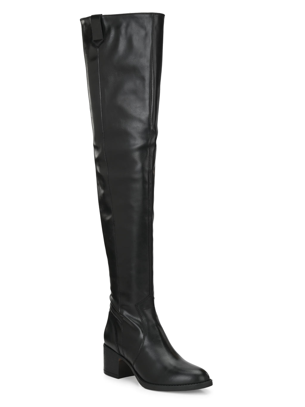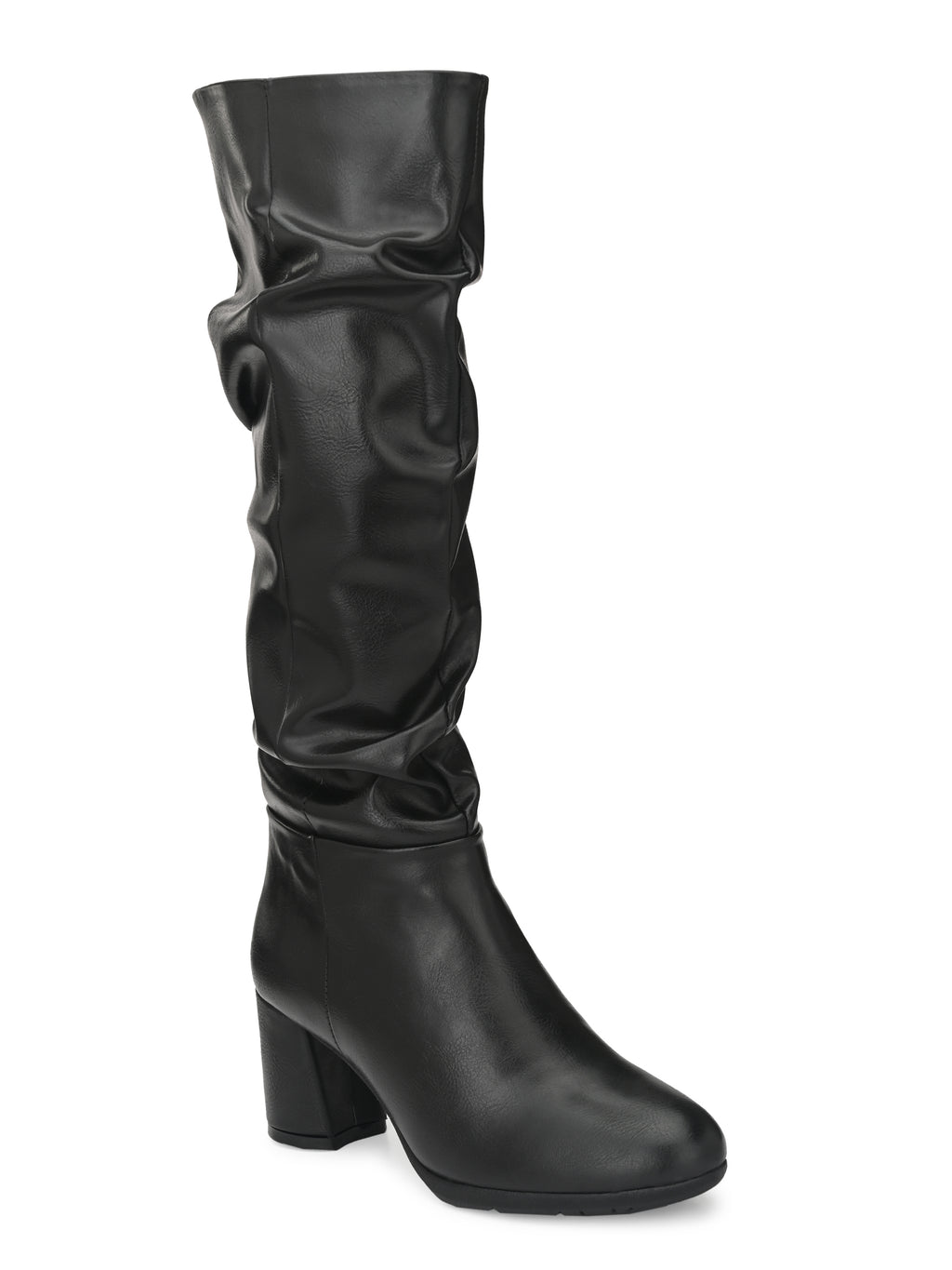 Black women, vegan leather,platform, high heel, knee high boots with inside zip to wear easily. Has back loop detail. Fabric lining and memory foam insock for ultimate comfort.